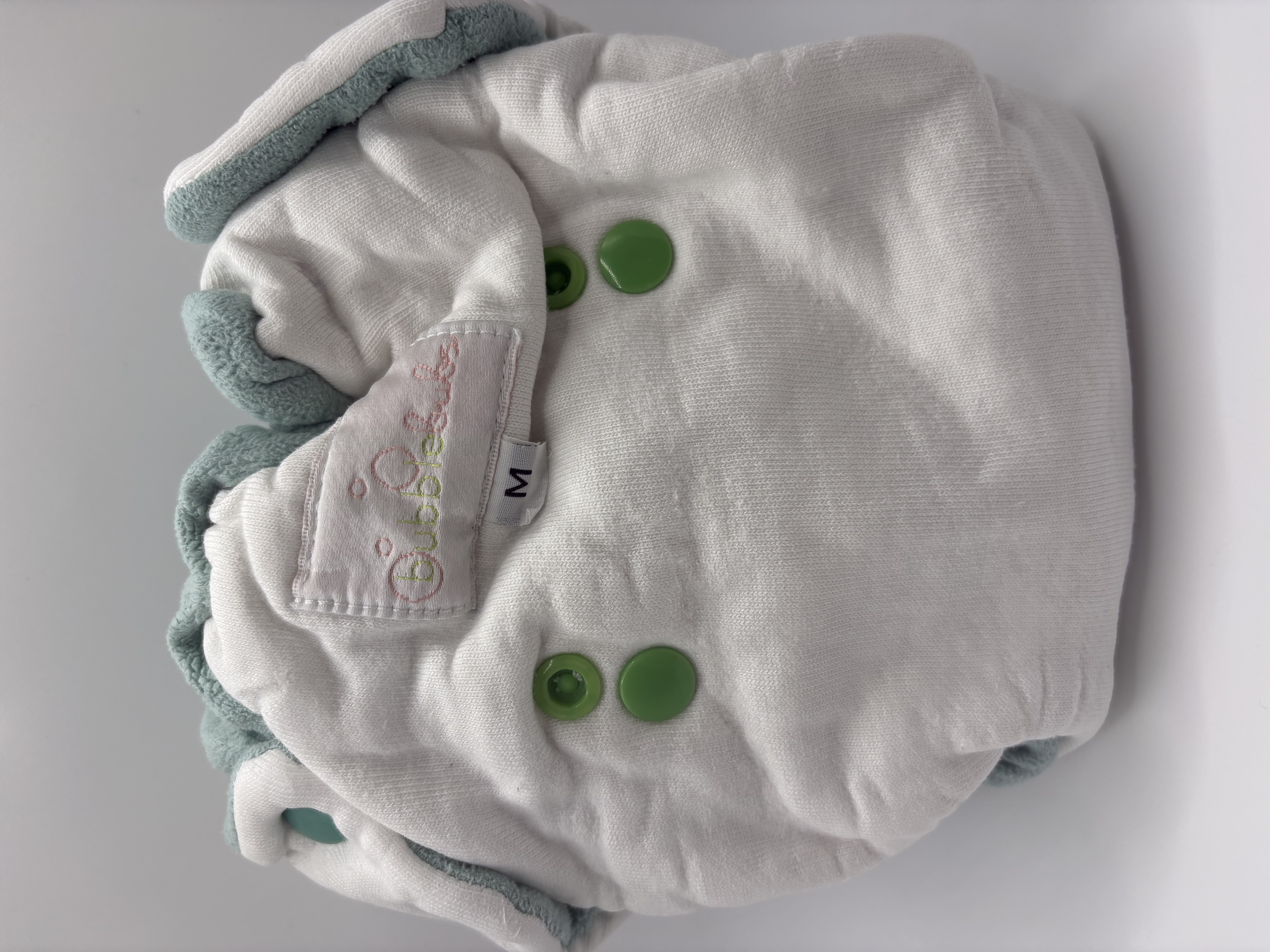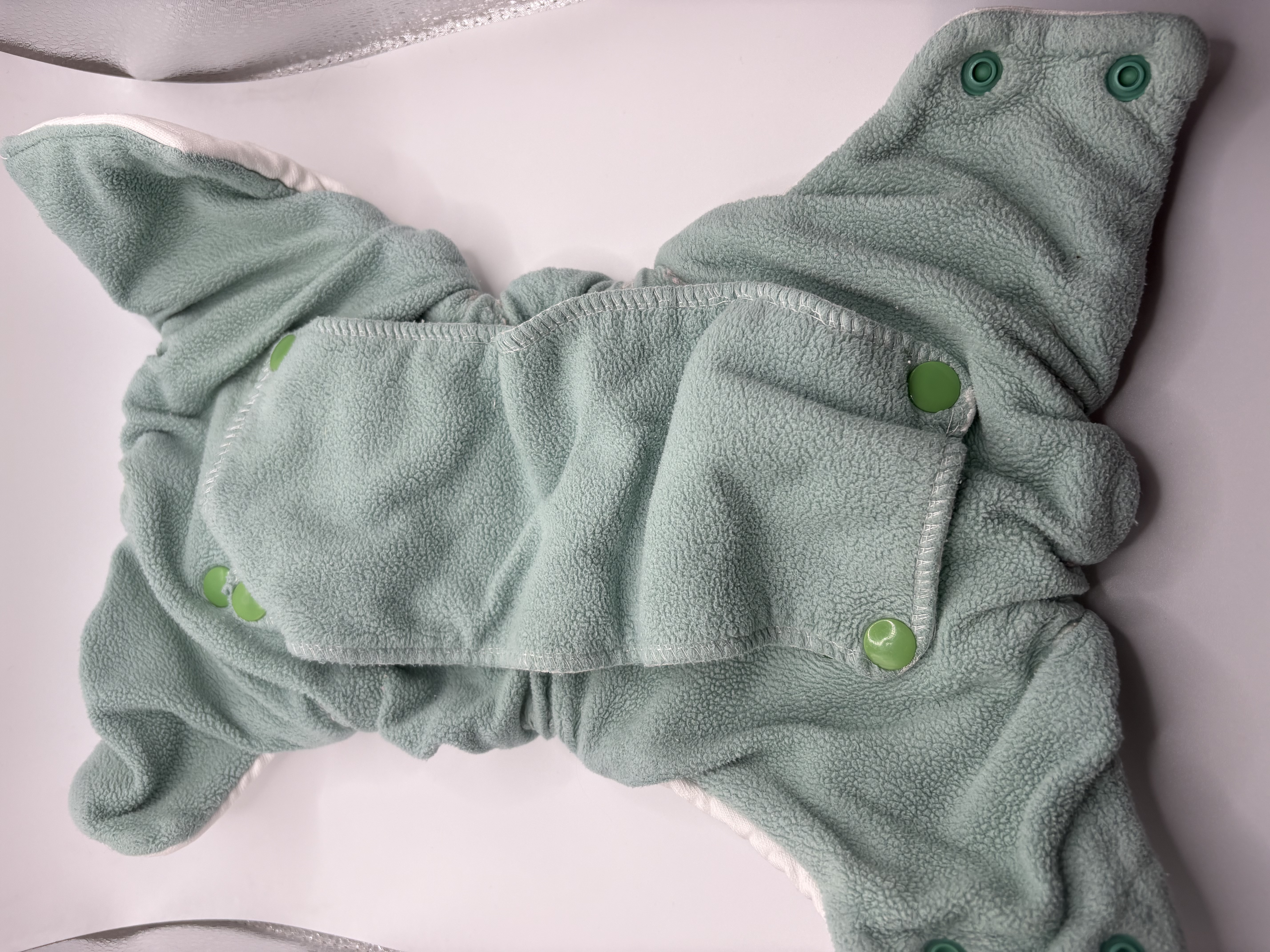 GODT BRUKT, men helt i orden. Legg i et bambus innlegg og du har en nattbleie. Utenpå bruker man sperrelag, Ingen flekker. Bambus og fleece. Fine som nattbleier - legg bambus innlegg rett i, og bruker bleietrekk utenpå. Brukte bleier kan være litt stive i stoffet så tromle eller gnikk de myke før bruk.