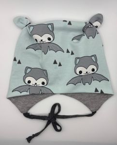Hvis luen er litt høy så kan du evt lage ører med et par strikker. Søtt og praktisk. Hvis du ikke har behov for snorer kan de klippes av. Printets plassering kan variere fra lue til lue.
